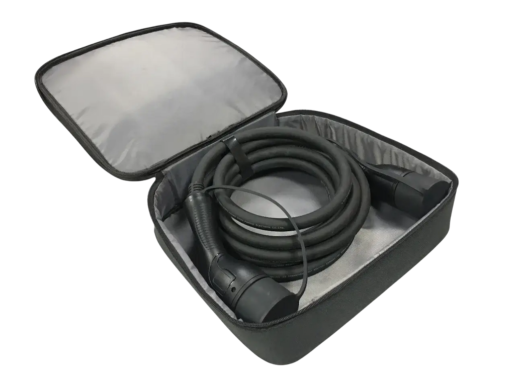 Male type 2 (Mennekes) to female type 2 connecters. This cable supports up to 7.4KW on single phase or up to 22KW on 3 phase.